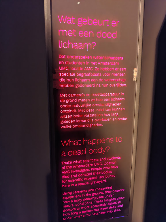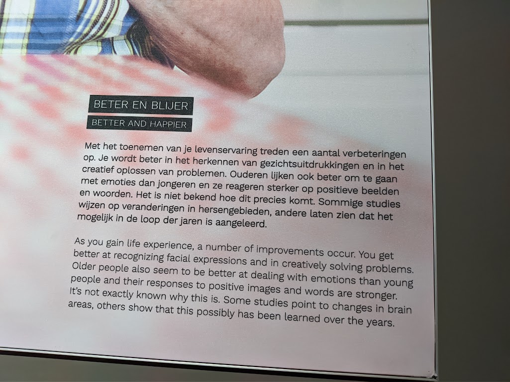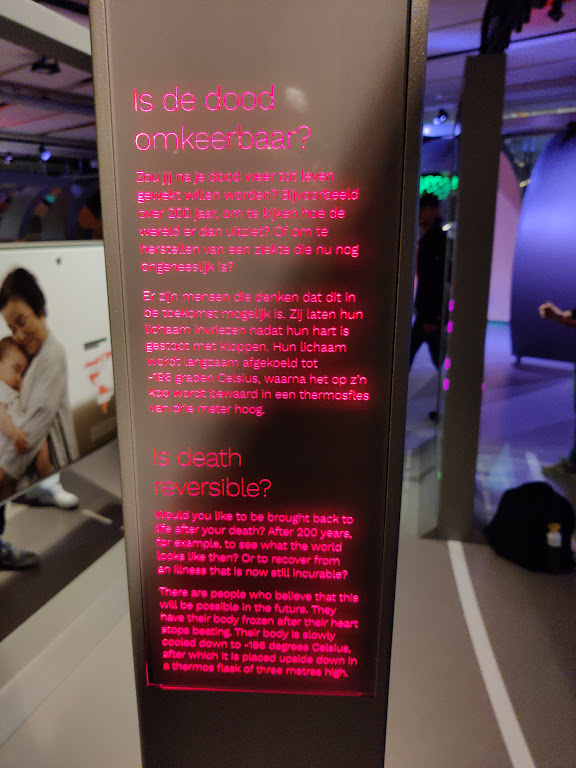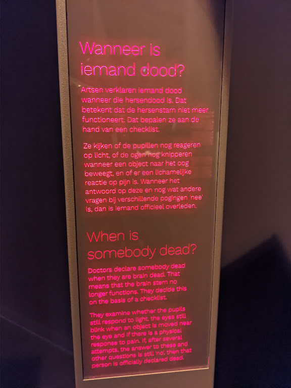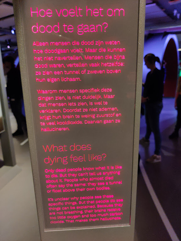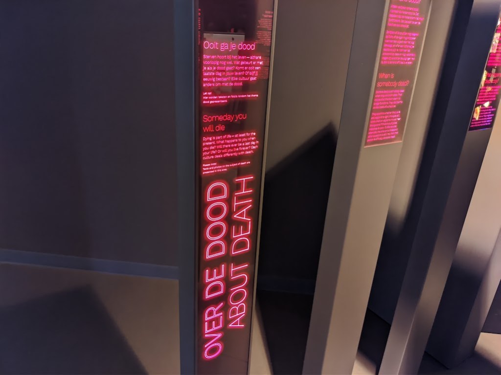 The My trip has been delayed due to the COVID19 pandemic, but I have finially commenced my trip to the Netherlands in May 2023! Firstly, I visited the Nemo Science Museum in Amsterdam which housed a fantastic exhibition about death and dying. The section titled ‘Over de dood’ (About Death) takes people through a journey about people’s views and experiences of death and dying from different cultural perspectives. The exhibition uses a mix of text, images and lighting to provide a thoughtful and emotional experience about death and dying, from a societal and human persepctive rather than a medical one. I really loved the design of the exhibition, with its inclusion within a family science musuem but also located within the ‘Hoe word ik ouder’ (How will I age?) section of the musuem, which presented positive messages about aging.